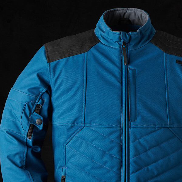 - Softshell 3 couches haute ténacité, laminé et déperlant.