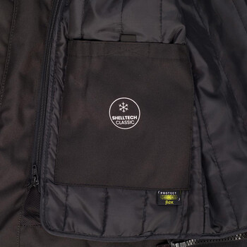 • Shelltech Classic : doublure thermique amovible ouatée avec bandes matelassées verticales piquées.