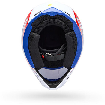 - Visière motocross Flying Bridge™ (type casquette) améliorant la circulation de l'air et permettant une meilleure gestion de l'énergie en cas d'impact.