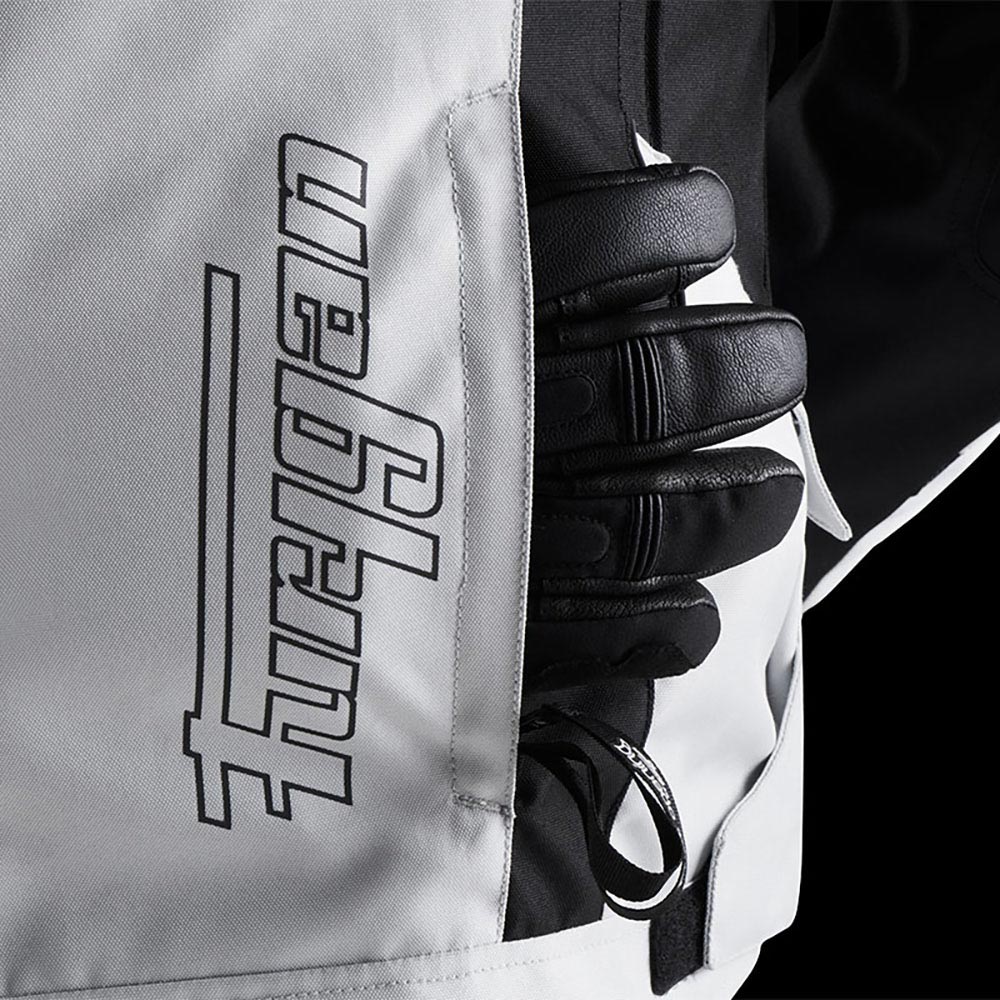 - Membrane étanche et respirante amovible Humax® ultra stretch, permettant de maintenir le corps du pilote au sec tout en permettant une bonne évacuation de l'humidité. Pouvant se porter sur ou sous le blouson.